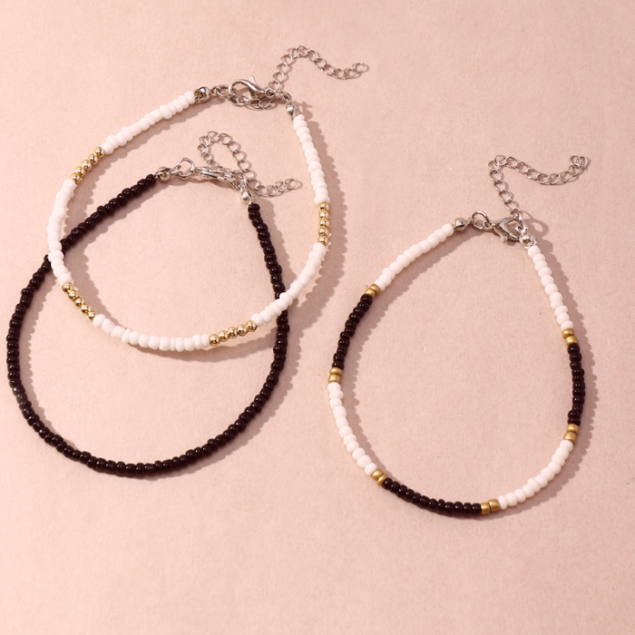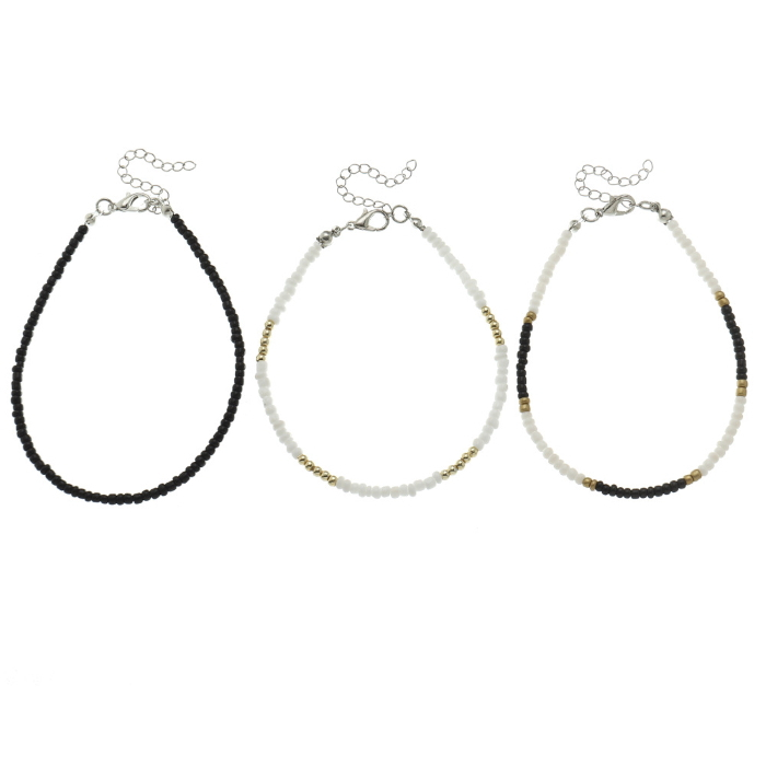Dieses 3er Set mit schwarzen und weissen Beach-Fusskettchen sehen einfach super aus und sind voll im Trend. Die Kettchen sind aus verschiedenen schwarzen und weissen Perlen gefertigt.