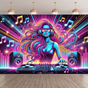 Künstlerisches XXL Wandtuch mit einer Frau als DJ